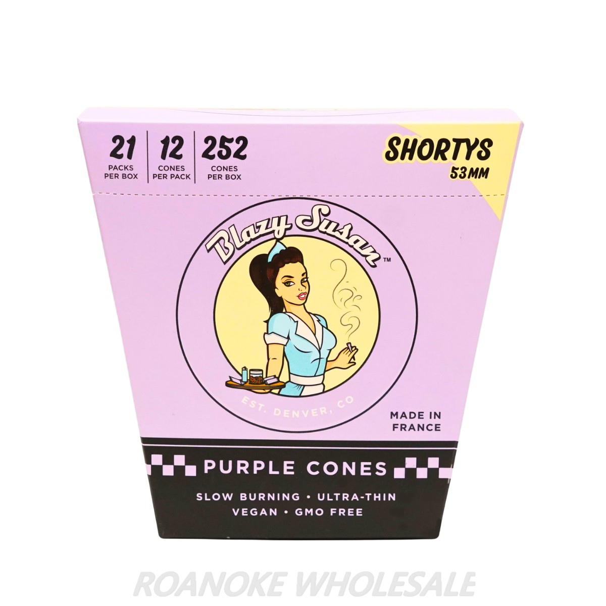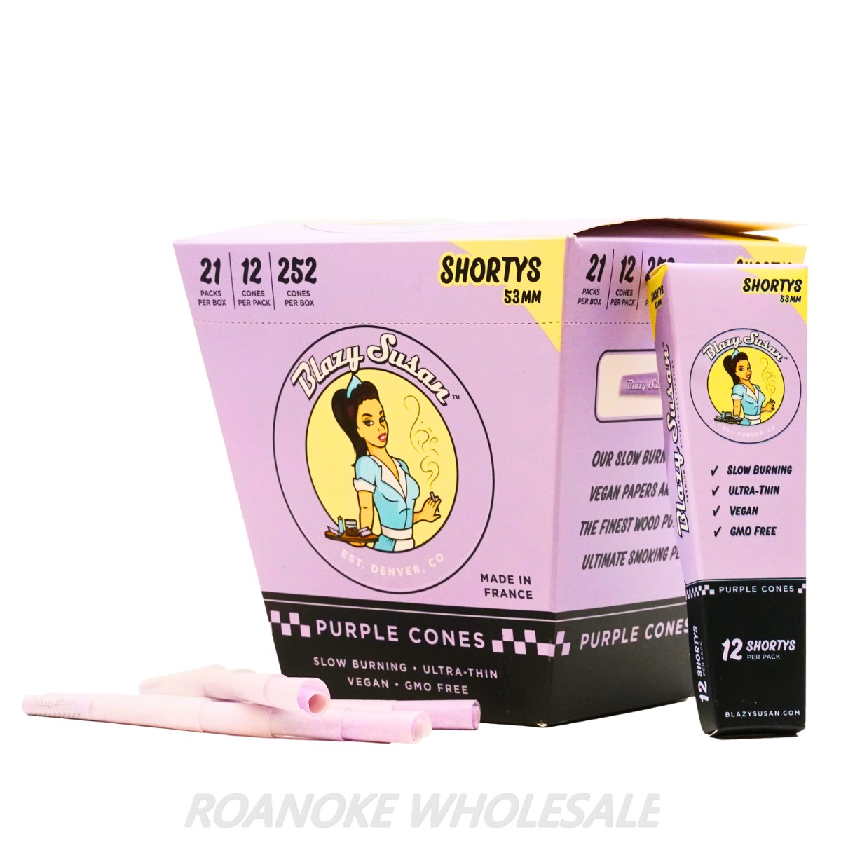 LOGIN FOR PRICEShorty Purple Pre Rolled Cones | Take a little smoke break with the new Shorty Cones from Blazy Susan! These mini cones are 53mm around half the size of our regular cones. Whether you just need a few hits to get your head straight, you want to try out a couple different strains individually, or want to give everyone their own personal joint at the party, the Shortys are just what you need! Take one on your next hike or walk around the park and treat yourself right.