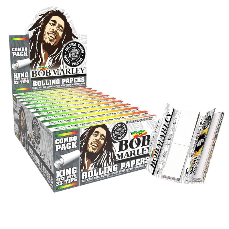 BOB MARLEY KING SIZE ULTRA THIN HEMP PAPERS + TIPS 24/33 PACKS