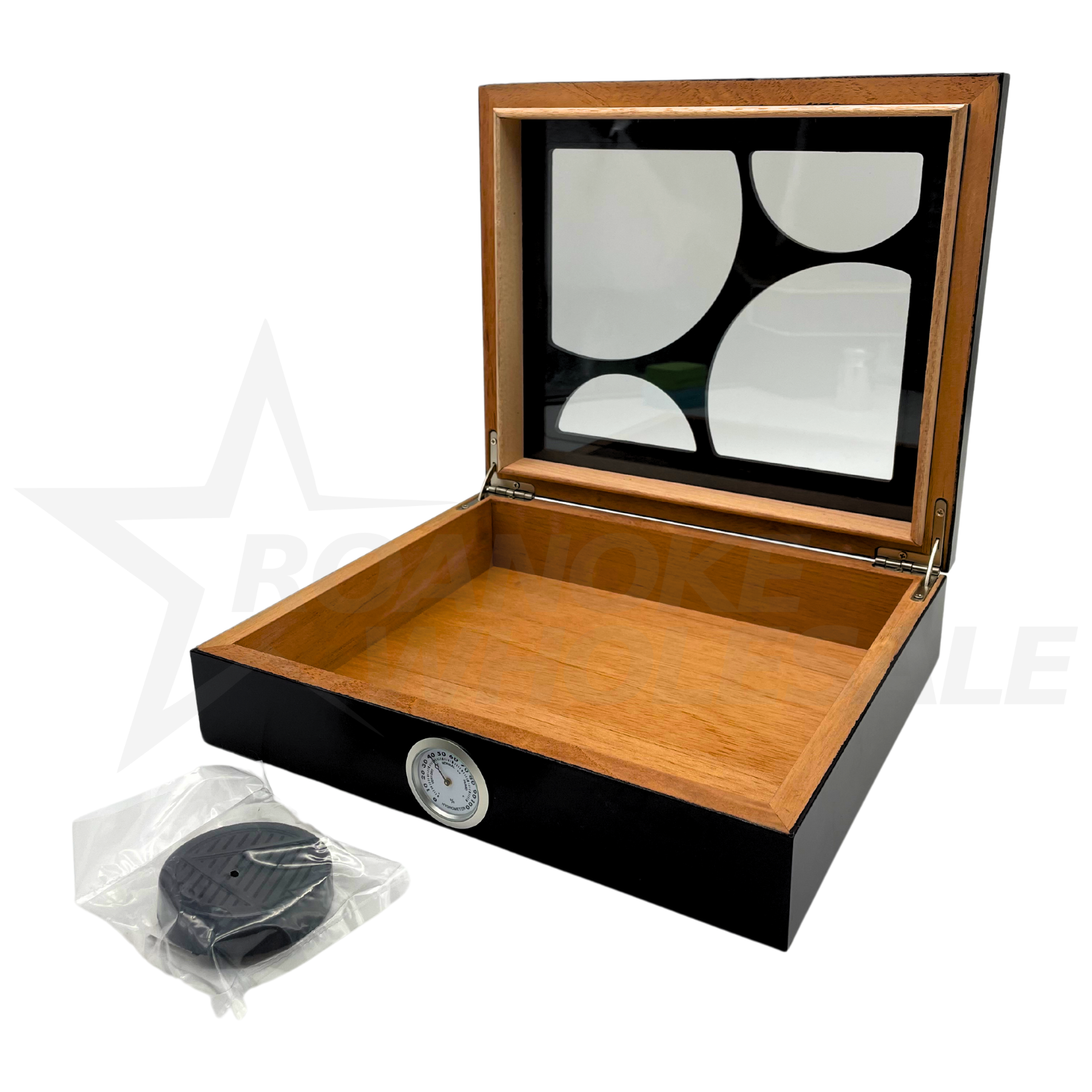 CIGAR HUMIDOR ABSTRACT GLASSTOP BLACK DESIGN