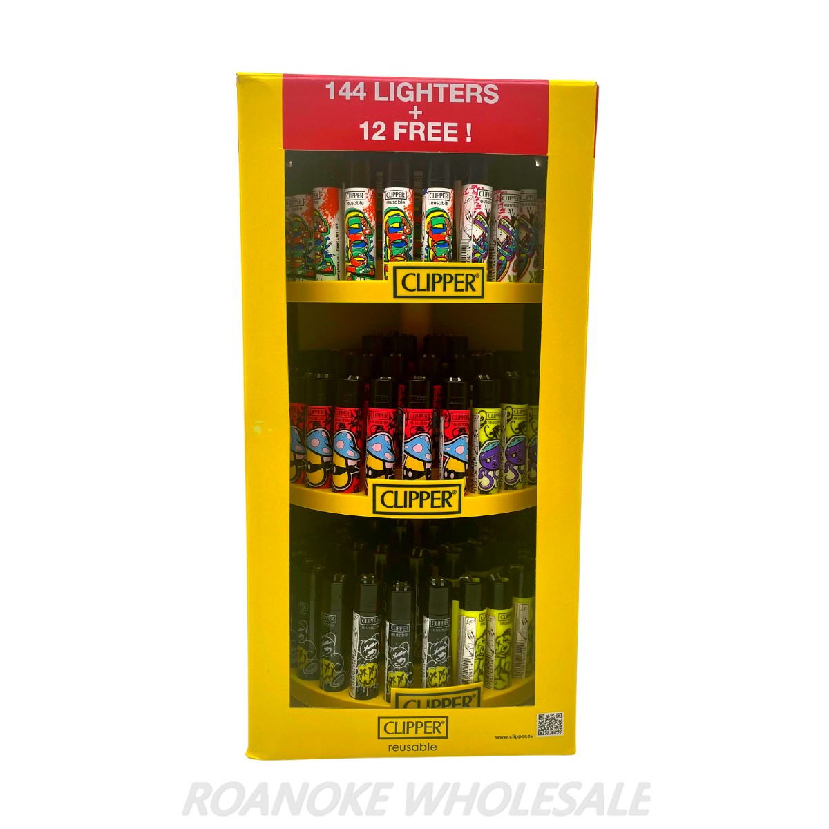144+12 Lighter Per Display Box (156 Total Lighters) Display Dimension: 7.3"(L) x 7.5" (W) x 14.5" (H)