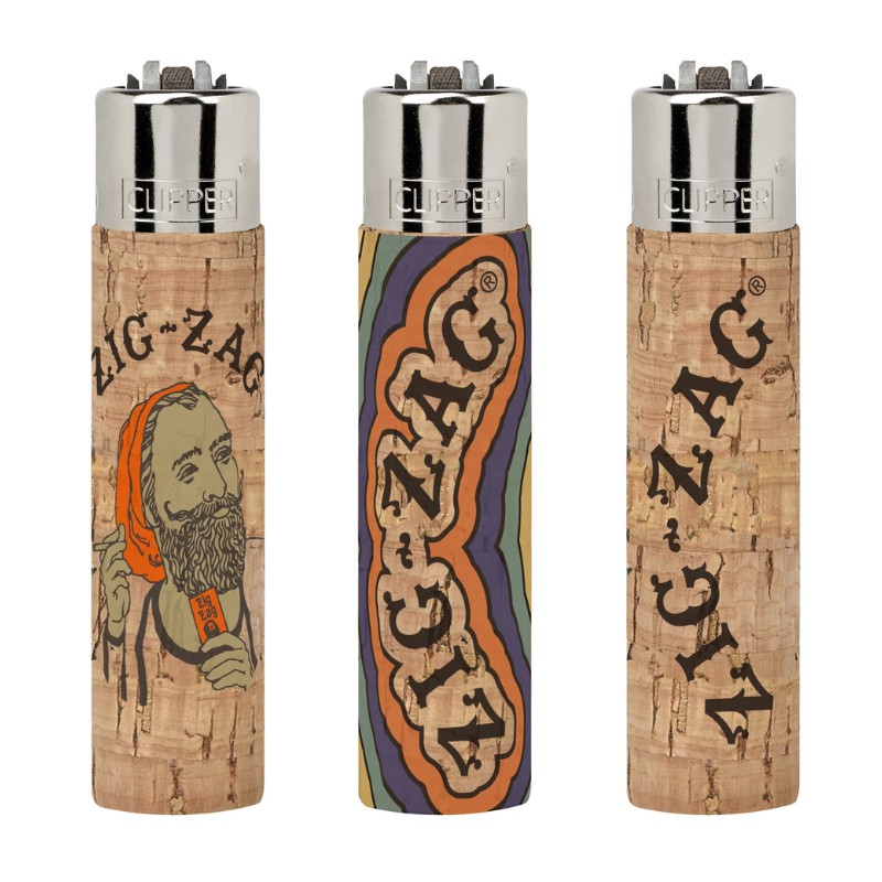 Display of 30 reusable butane lighters High quality cork sleeve 3 various designs