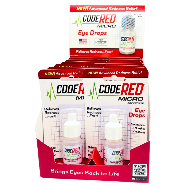 Display of 12 bottles 8mL per bottle Pocket Size Advanced Redness Relief Made in the USA