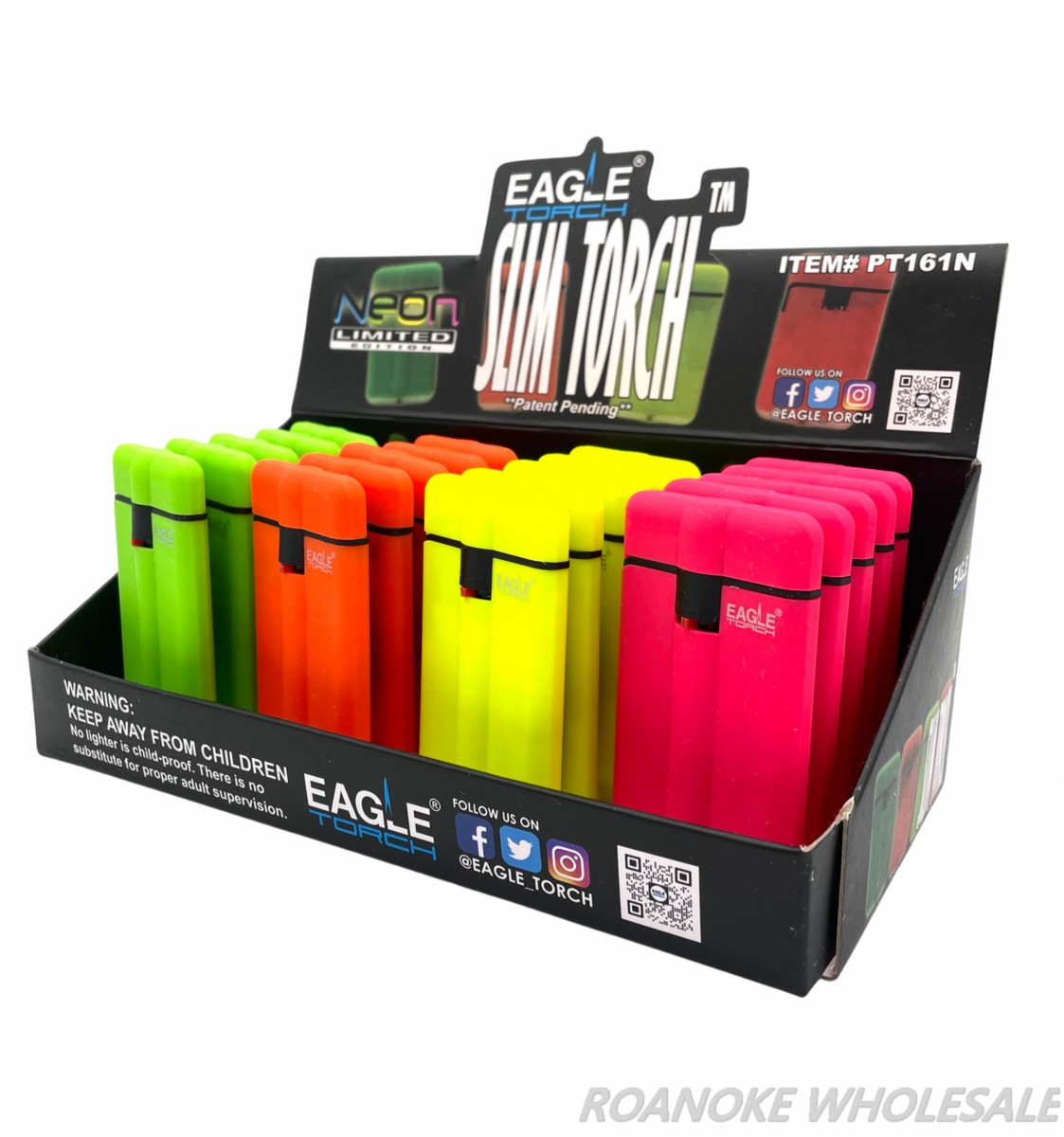 Eagle Torch Limited Edition Neon Slim Torch – 20 Slim Torches in a Display divided in 4 different colors: Green, Orange, Yellow, Pink – Slim handheld design easy to use