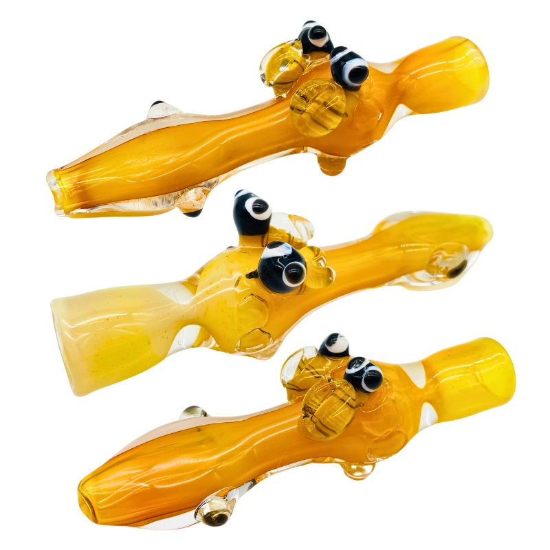 Pack of 3 handmade glass one hitter chillums Approximately 4" (sizes vary slightly) Gold fumed (colors vary slightly)