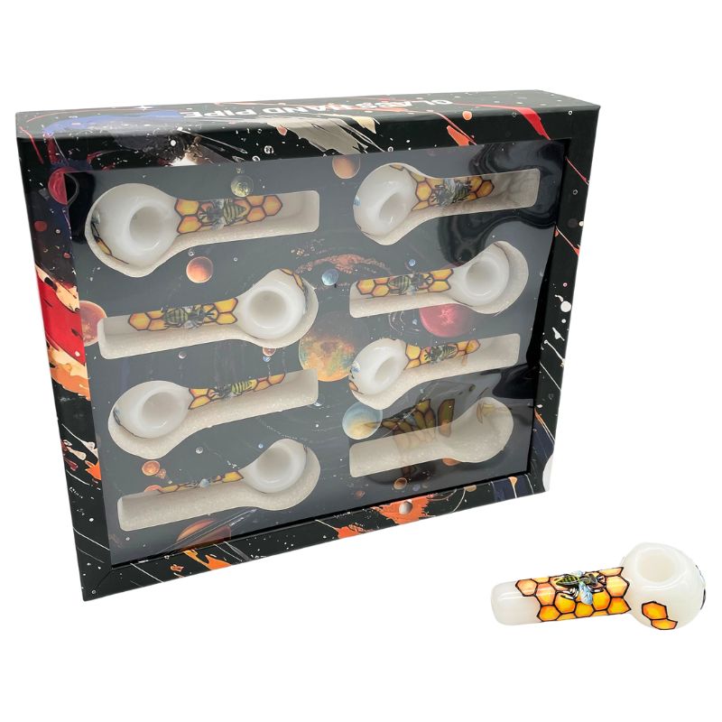 GLASS HAND PIPE BEE 8PCS (CTP065-MIX)