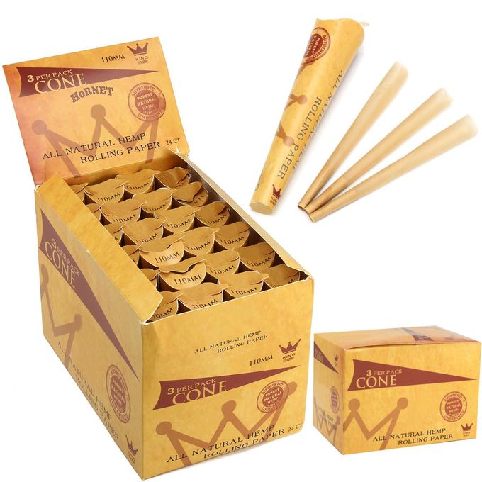 – All Natural Unrefined Hemp Pre-Rolled Cones – 3 x 110mm King Size Cones per Pack – 24 count display