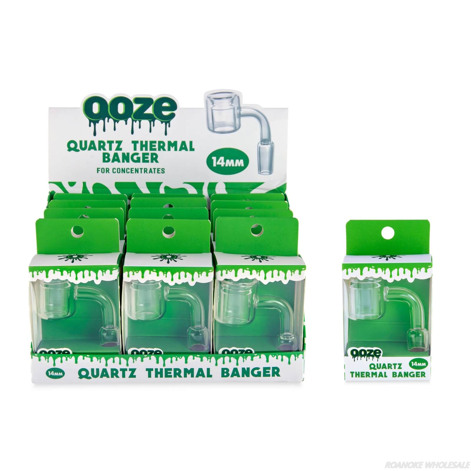 Refresh your dab rig, replace a broken banger, or keep a backup banger on hand with the quartz 90 degree Thermal banger. It is a 14mm male banger with a double quartz wall and is compatible with all Ooze silicone glass hybrid pieces.