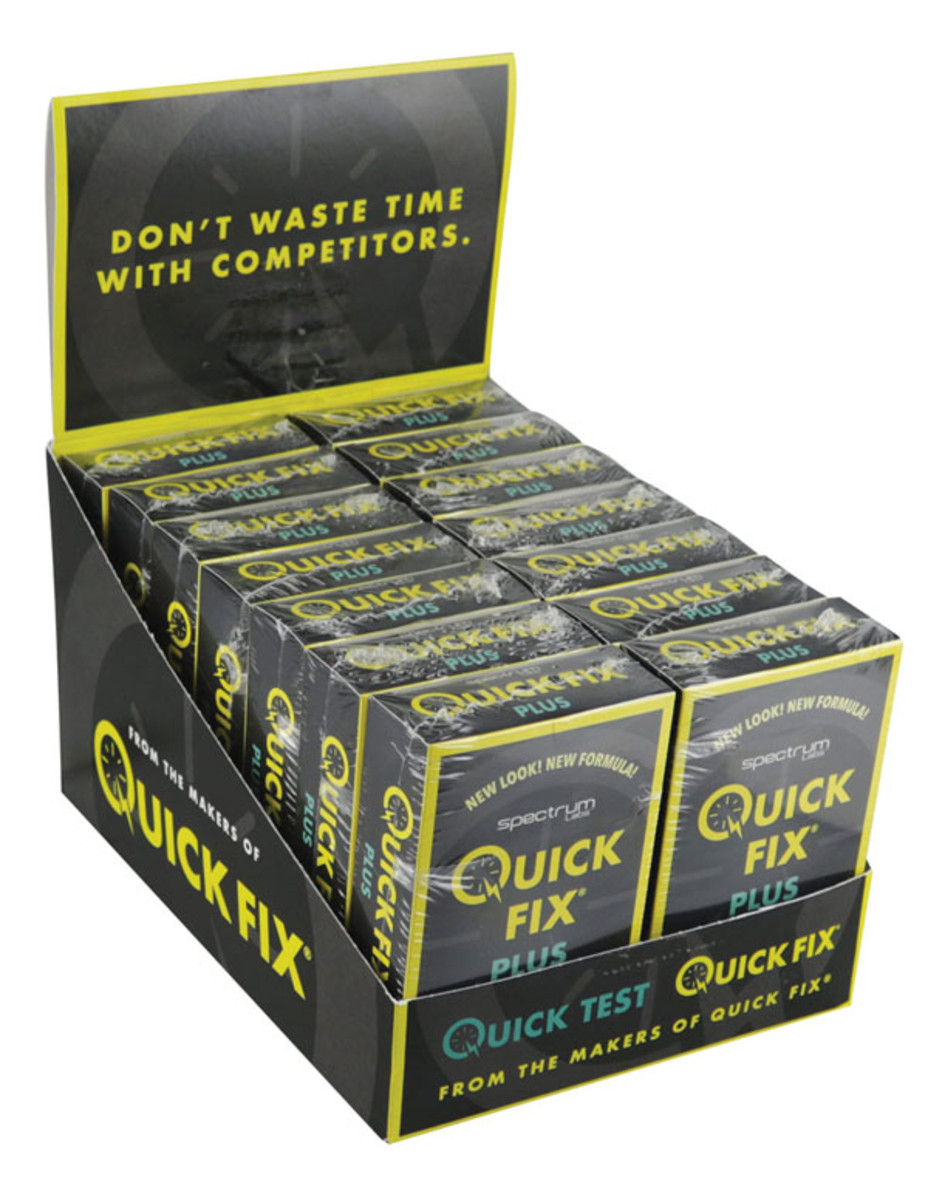 3oz synthetic urine bottle Includes temperature strip and heat pack Pre-mixed with Urea & Uric Acid Made by Spectrum Labs 14pc counter top display