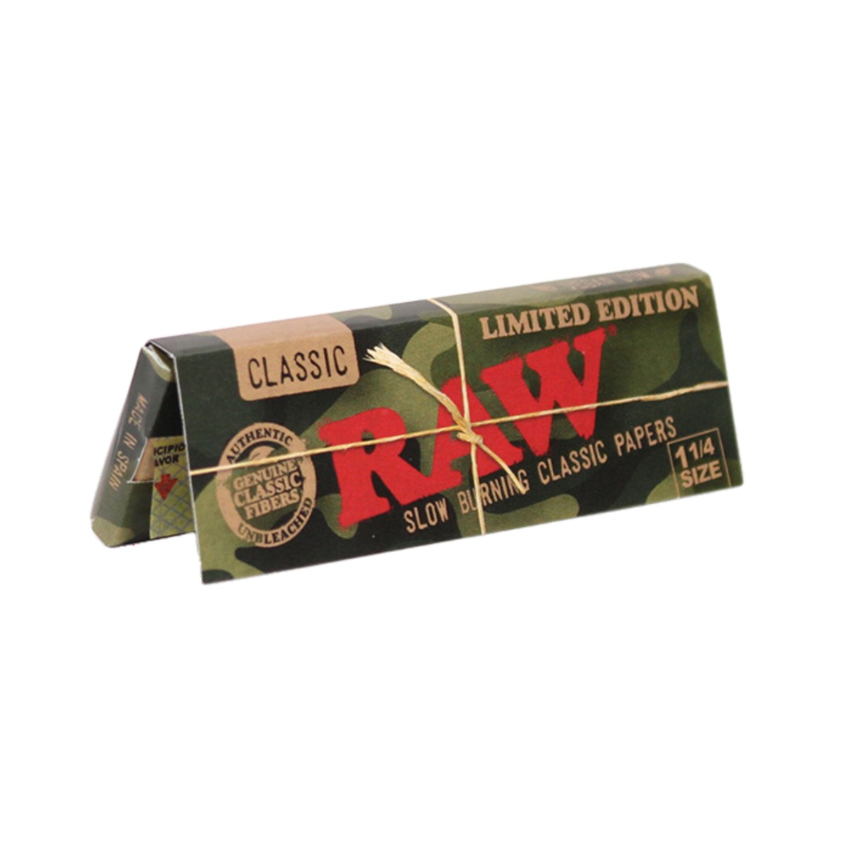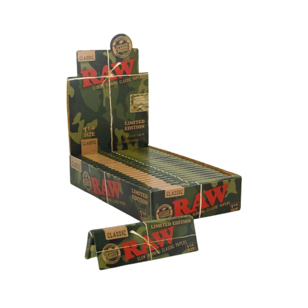 RAW Classic Rolling Papers Limited Edition Camo 1 1/4 Size – Fits 79mm Rolling Machines 50 Leaves per pack 24 Packs Per Box