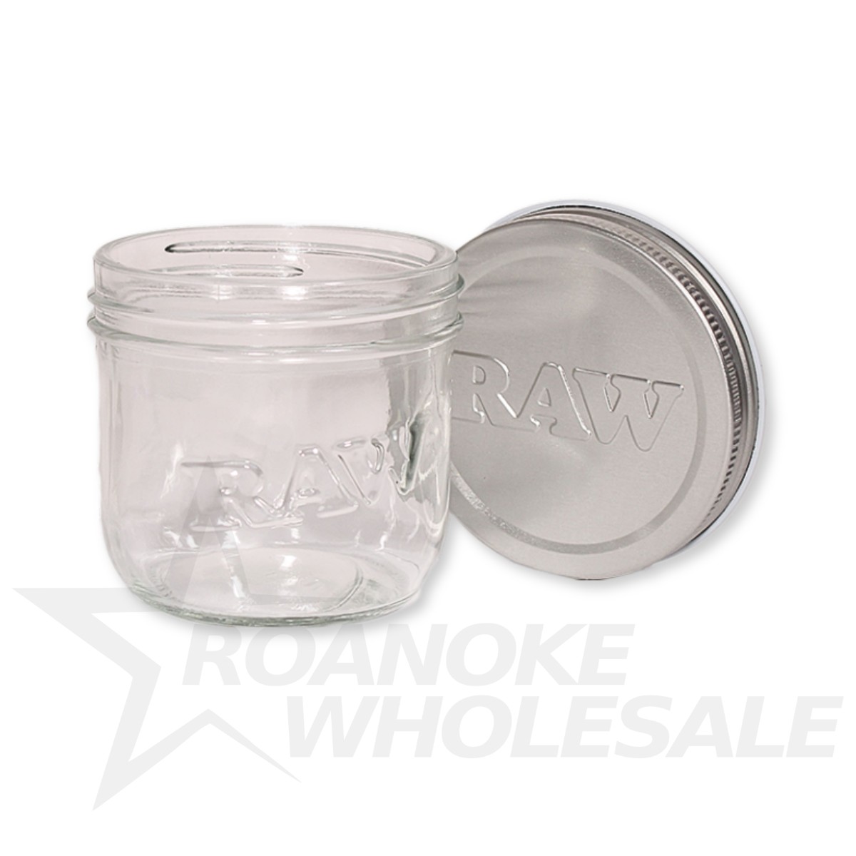 – 6 count display – Glass stash jars – Threaded metal lid – Airtight seal Mason Jar – Embossed RAW logo