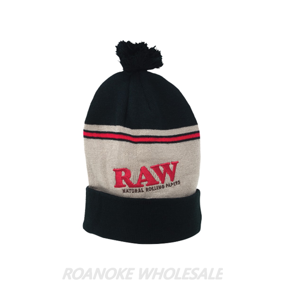 RAWk this super-cool pompom hat all winter with the RAW logo emblazoned in red. Choose solid black or black/brown.