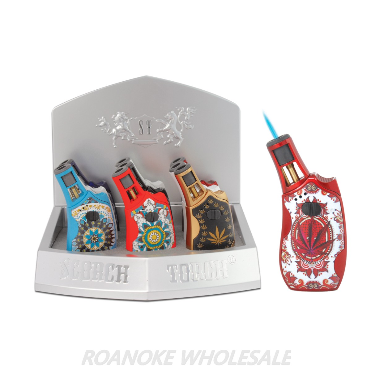Scorch Torch/Turbo CC Torch Mandala Leaf asst designs – Height: 4.25" – Hold button – Zinc Material