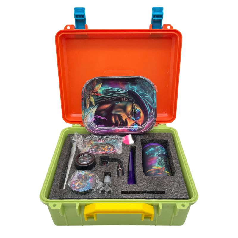 Kit Includes: Metal Rolling Tray Grinder Water Pipe Banger Silicone Container Wax Container
