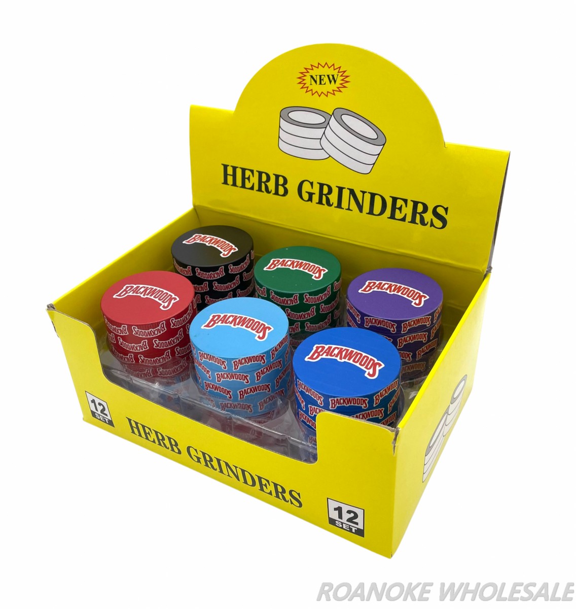 HERB GRINDER SOLID COLORS BACKWOODS 50MM METAL GRINDERS 12PCS