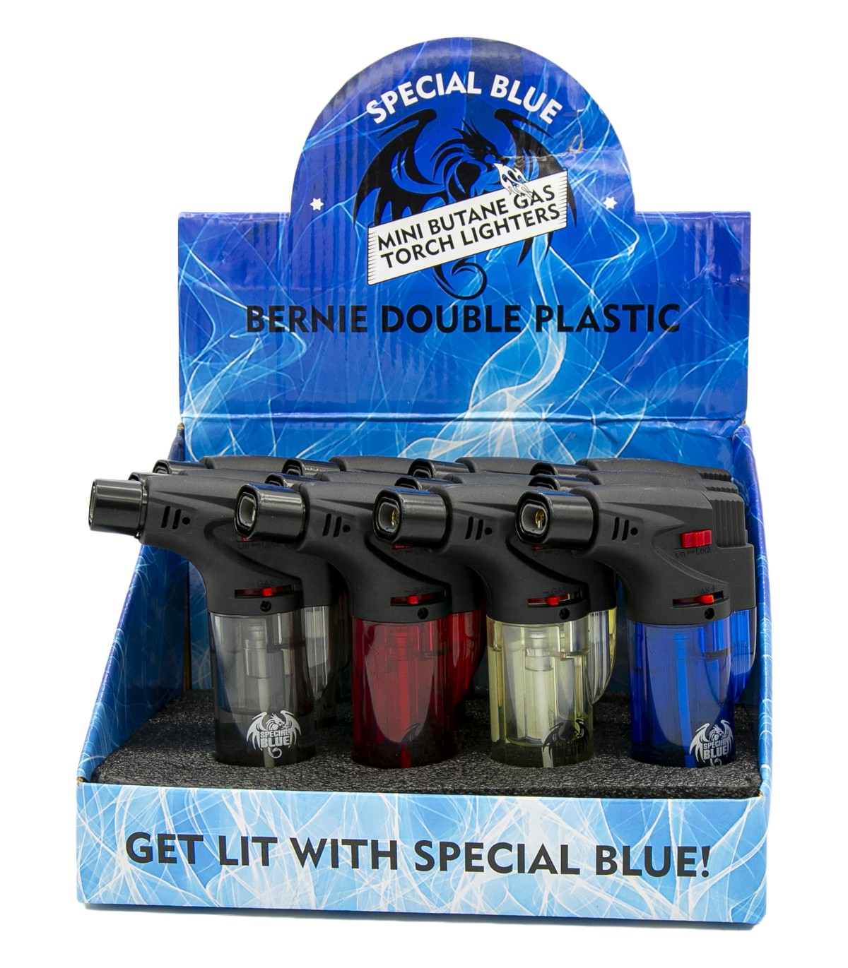 SPECIAL BLUE TORCH LIGHTERS – BERNIE DOUBLE PLASTIC (LT115) 12PCS [NO SHIPPING]