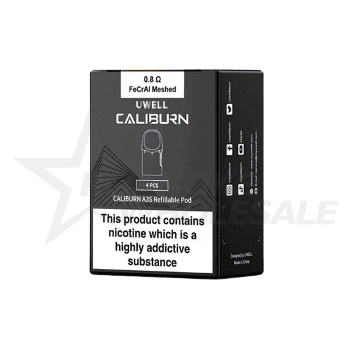 Uwell Caliburn A3S Pods Features: 2mL Pod Capacity Built-in Coil options: 0.8 & 1.0 ohm Side Filling System Transparent Juice Viewing Window Press-fit Pod Connection Comes in a pack of four (4)