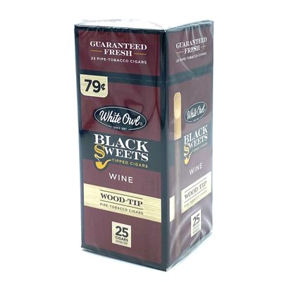 WHITE OWL BLACK SWEETS WOOD TIP CIGARS $0.79 25/1 PACKS