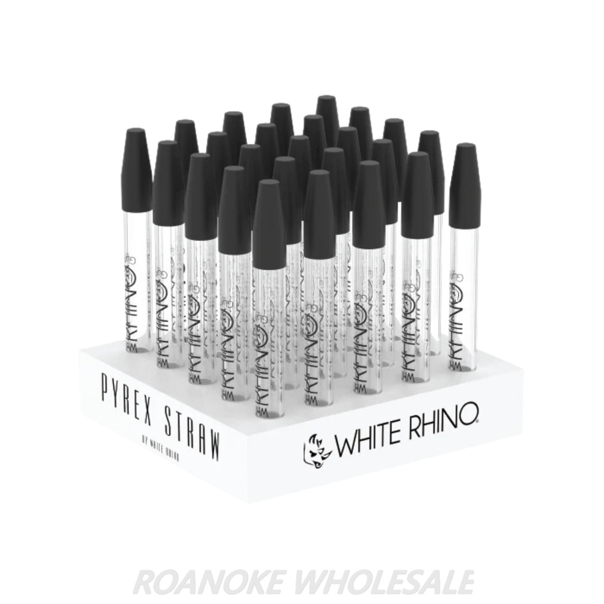WHITE RHINO PYREX GLASS STRAW WITH SILICONE CAP 25PCS
