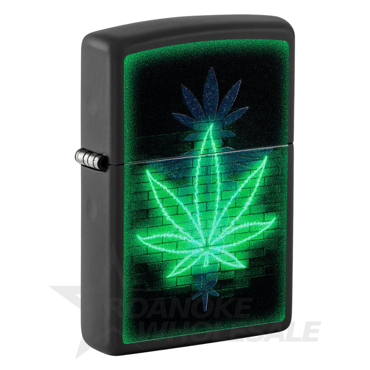 This classic Black Matte lighter features a geometric cannabis leaf in a minimalist Color Image design, which illuminates under ultraviolet light thanks to our specialty Black Light process. Comes packaged in a gift box.