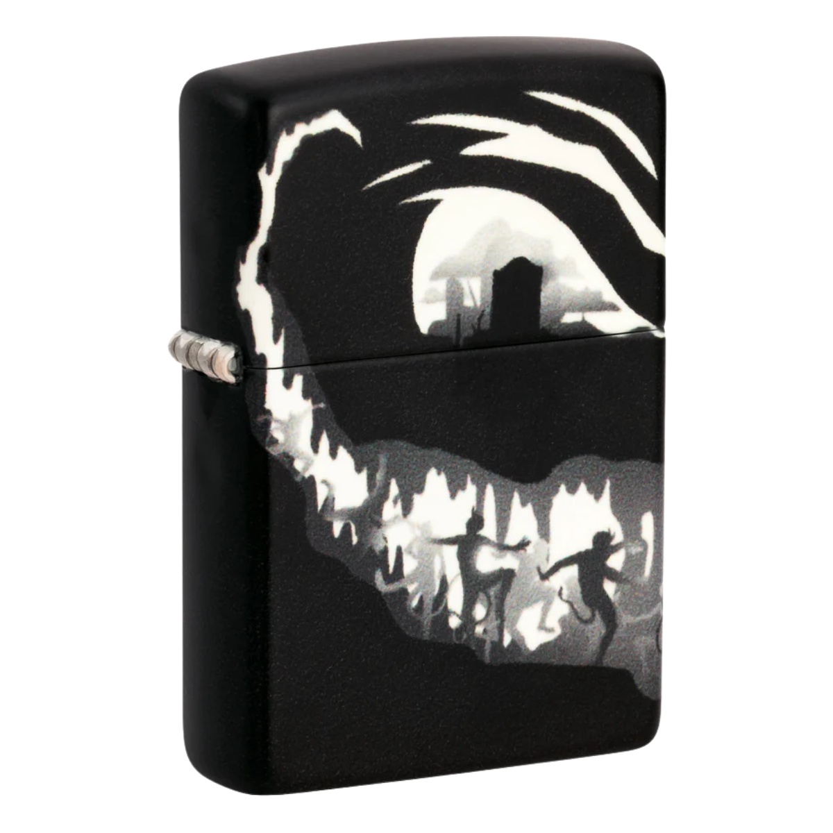 A wicked jack-o-lantern reveals devilish dancers beneath a frightening graveyard on this whimsical 540 Color lighter. The piece is treated with our specialty Glow-in-the-Dark finish for extra ghoulishness. Comes packaged in a gift box.