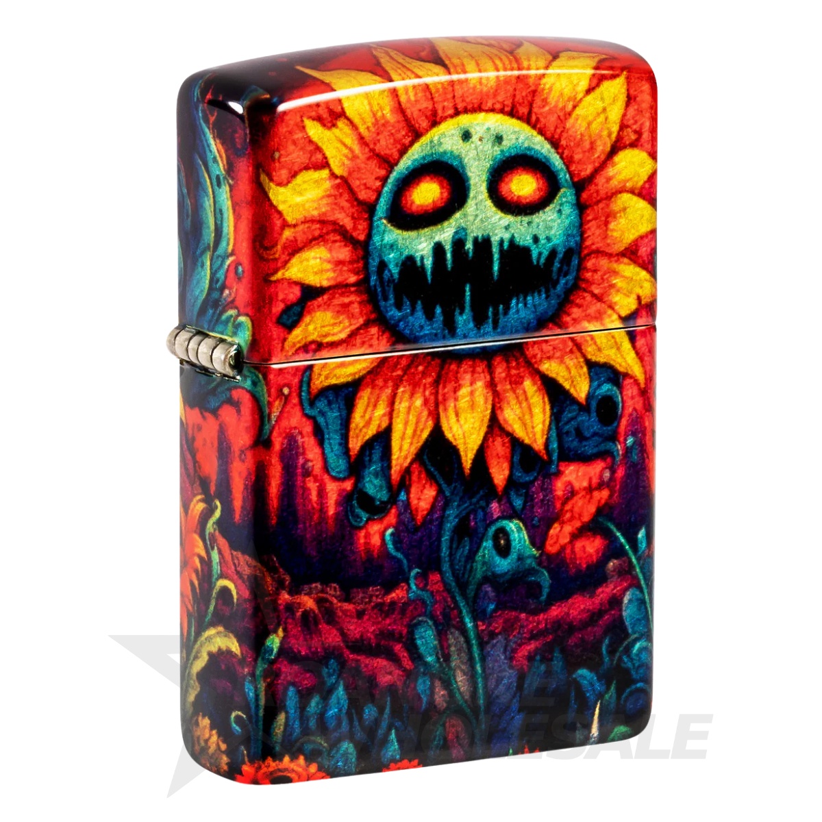 Set on a classic Tumbled Brass base model, ghoulish sunflowers grin and sway on every surface in a shimmering 540 Fusion design. Comes packaged in a gift box.
